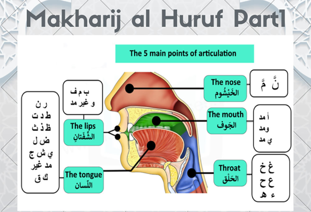 Master the art of recitation with correct pronunciation (Makharij) and characteristics.